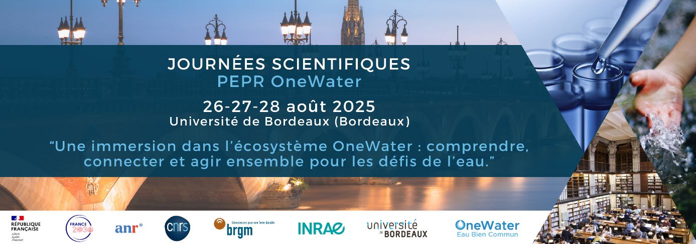 * OneWater – Eau Bien Commun est un programme national de recherche sur l’eau douce continentale, copiloté par le CNRS, le BRGM et INRAE, avec 10 partenaires académiques dont l’Université de Bordeaux. Financé à hauteur de 53 millions d’euros sur 10 ans depuis 2023 par le Plan France 2030, son objectif vise à réhabiliter l’eau comme bien commun face à des pressions climatiques et anthropiques accrues.
