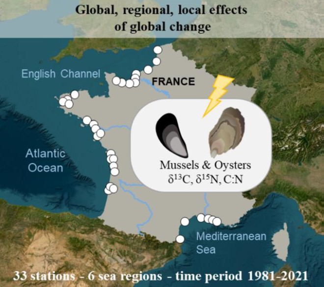 Le projet s’intéresse à l’évolution à long terme (échelle pluri-décennale) de l’influence des apports continentaux sur le fonctionnement des zones estuarienne qui est évaluée à travers le prisme des ressources trophiques et de la physiologie des bivalves (moules et des huîtres), espèces sentinelles de l’environnement.
