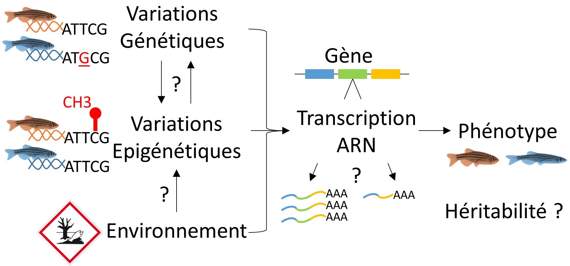 Étude des changements induits par la pollution, y compris au niveau multi/trans-générationnel, dans l’activité des gènes et des impacts associés sur le phénotype des organismes en empruntant des concepts et méthodes provenant de diverses disciplines : génétique (SNP), épigénétique (méthylation de l’ADN, ARN non codants) et transcriptomique (ARN messagers, épissage).
