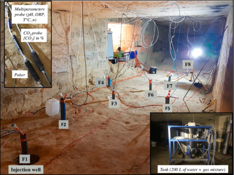 S’assurer de l’intégrité des sites d’exploitation des réservoirs et de stockages souterrains, ainsi que de leur confinement, est une nécessité pour réduire autant que possible leur impact sur l’environnement. Les réseaux de surveillance déployés tant en surface qu’en profondeur ainsi que les systèmes d’alerte précoce sont autant d’outils clés permettant d’assurer une exploitation sûre du sous-sol, qu’il s’agisse du stockage du CO2, la production d’hydrocarbures, le stockage de gaz naturel ou même la filière géothermie. Le projet Aquifer-CO2Leak propose le développement et la mise en œuvre de méthodologies et de technologies de monitoring géochimique et géophysique, qualitatives et quantitatives pour la localisation des fuites de CO2 dans les aquifères et dans la zone non saturée. Il s’agit d’utiliser des approches multi-puits et multi-traceurs à l’aide d’outils tel que l’infrarouge, la spectrométrie de masse, la fluorescence UV-visible, la spectrométrie photoacoustique et la tomographie électrique. Le projet se développera en trois phases. Une première phase sera dédiée à la mise au point de l’ensemble des instrumentations regroupant les différentes technologies envisagées, ainsi qu’au développement des nouvelles infrastructures sur le site de Saint-Emilion permettant d’étudier la nappe phréatique et d’y incorporer les instruments du projet. La deuxième phase s’articulera autour du site expérimental de Saint-Emilion, ou l’instrumentation sera éprouvée lors d’expérimentations d’injection d’eau chargée en CO2 et traceurs, elle-même étudiées grâce à la modélisation numérique des écoulements en milieu poreux, avec le logiciel COORES. Notamment, on cherchera à optimiser le fonctionnement des instruments, et à mettre au point des méthodologies d’exploitation des données d’analyse pour fournir des interprétations claires sur les origines spatiales et temporelles d’une fuite de gaz dans un aquifère. La troisième phase sera dédiée à la mise en œuvre des instruments et méthodes développées dans le projet sur des cas industriels concrets, mis à disposition par les partenaires industriels IPC et TIGF. Enfin, le projet se propose d’évaluer l’impact de fuites CO2 sur les hydrosystèmes, en cas de comportement anormal des sites de stockages (fuite, interactions géochimiques entre le CO2 et les aquifères pouvant entrainer la mobilité d’éléments traces Pb, Zn, Ba, Li etc…). A son terme le projet ambitionne de fournir des solutions innovantes pour monitorer les aquifères dans le cadre de la gestion des opérations industrielles dans le sous-sol, avec comme point d’orgue le stockage géologique du CO2.