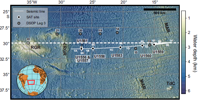 Ce projet s’appuye sur des sédiments collectés lors des expédition IODP 390&393, le long d’un transect bathymétrique le long de la pente de la dorsale médio-atlantique à 30°S, dans le but d’étudier la circulation océanique profonde et sa relation avec le climat global au plio-quaternaire. Ce projet vise notamment à mieux comprendre la dynamique de ces masses d’eau, notamment en à deux objectifs principaux : (1) tracer les migrations verticales dans la colonne d’eau et reconstruire les vitesses d’écoulement des NADW, LCDW et AABW et (2) comprendre les intéractions entre les variations eustatiques et climatiques et la dynamique de la NCW et de la SCW depuis le Pliocène.