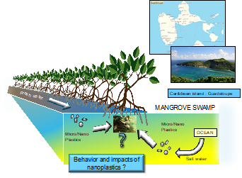 L’objectif principal du projet PEPSEA (2018-2022) a été de déterminer le cycle de vie des micro et nanoplastiques (MNP) dans la zone du bassin versant des mangroves de Guadeloupe, de comprendre leur schéma de fragmentation et d’étudier le premier impact de la distribution globale des déchets plastiques sur les organismes aquatiques de ces zones de transition (méiofaune, huîtres, moules, gastéropodes, crabes). Partenaires : Géosciences Rennes, IPREM Pau, EPOC-EA, Cordouan Technologies